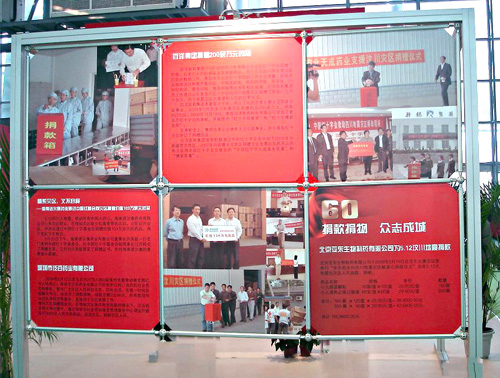 在此次全國藥品交易會上,組委會舉辦了60屆專題回顧活動。在“眾志成城,抗震救災——用我們的愛心給你們力量”大型圖片展,對全國醫藥企業,在四川汶川地震時的奉獻愛心活動進行了報導,并刊登了我公司王振剛總經理以及我公司員工捐款活動的大幅照片,四川醫藥工業協會向支持抗震救災的藥界同仁,表示衷心感謝和致敬。全國藥品交易會組委會表示,為了支持災區重建,全國藥品交易會將在四川連續舉辦三次。