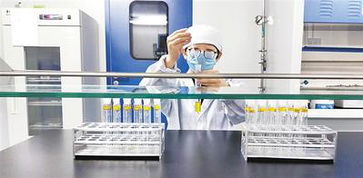 在河北天成藥業(yè)股份有限公司中心化驗(yàn)室,化驗(yàn)員正在對(duì)新生產(chǎn)出來的注射用過氧化碳酰胺進(jìn)行質(zhì)量檢驗(yàn)。河北日?qǐng)?bào)通訊員 鄭富貴攝